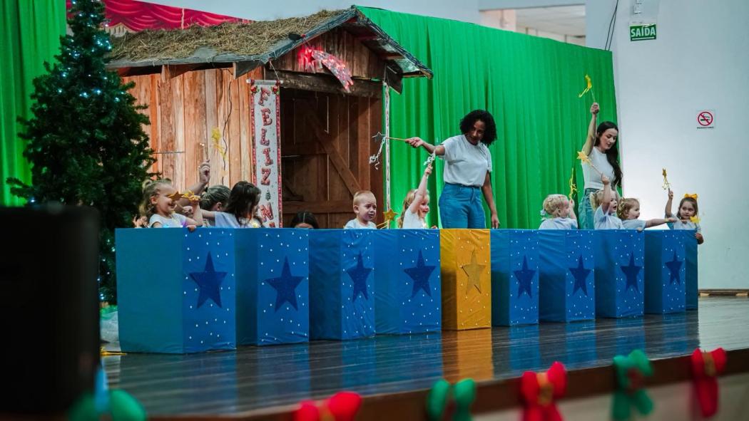 As crianças deram um show à parte, levando ao palco todo o espírito natalino com músicas, coreografias e muita alegria.