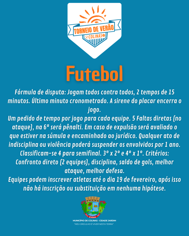 A comunidade está convidada a participar, torcer e prestigiar mais uma grande edição do Torneio de Verão de Colinas.
